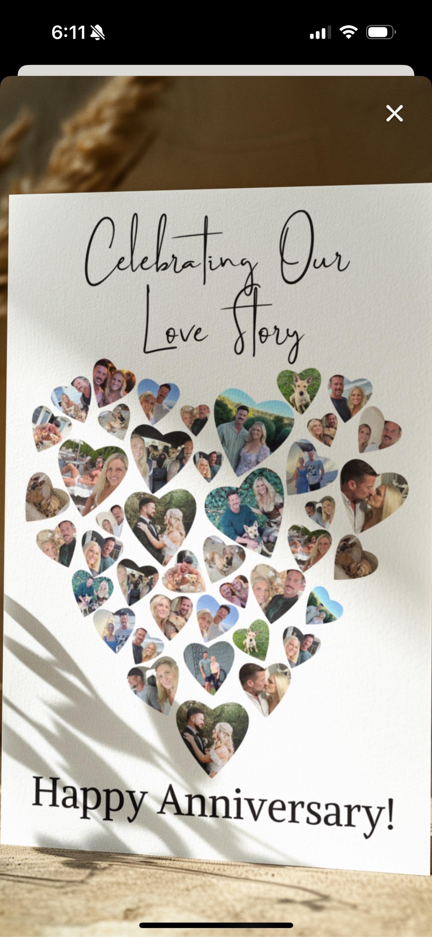 This heart-shaped photo collage card is the perfect way to capture your most meaningful memories—wedding photos, adventures, everyday smiles—beautifully arranged into 40 photo spaces. Printed on luxurious 110 lb glossy cardstock and paired with a matching envelope, this card isn’t just a greeting—it’s a keepsake your partner will treasure forever.