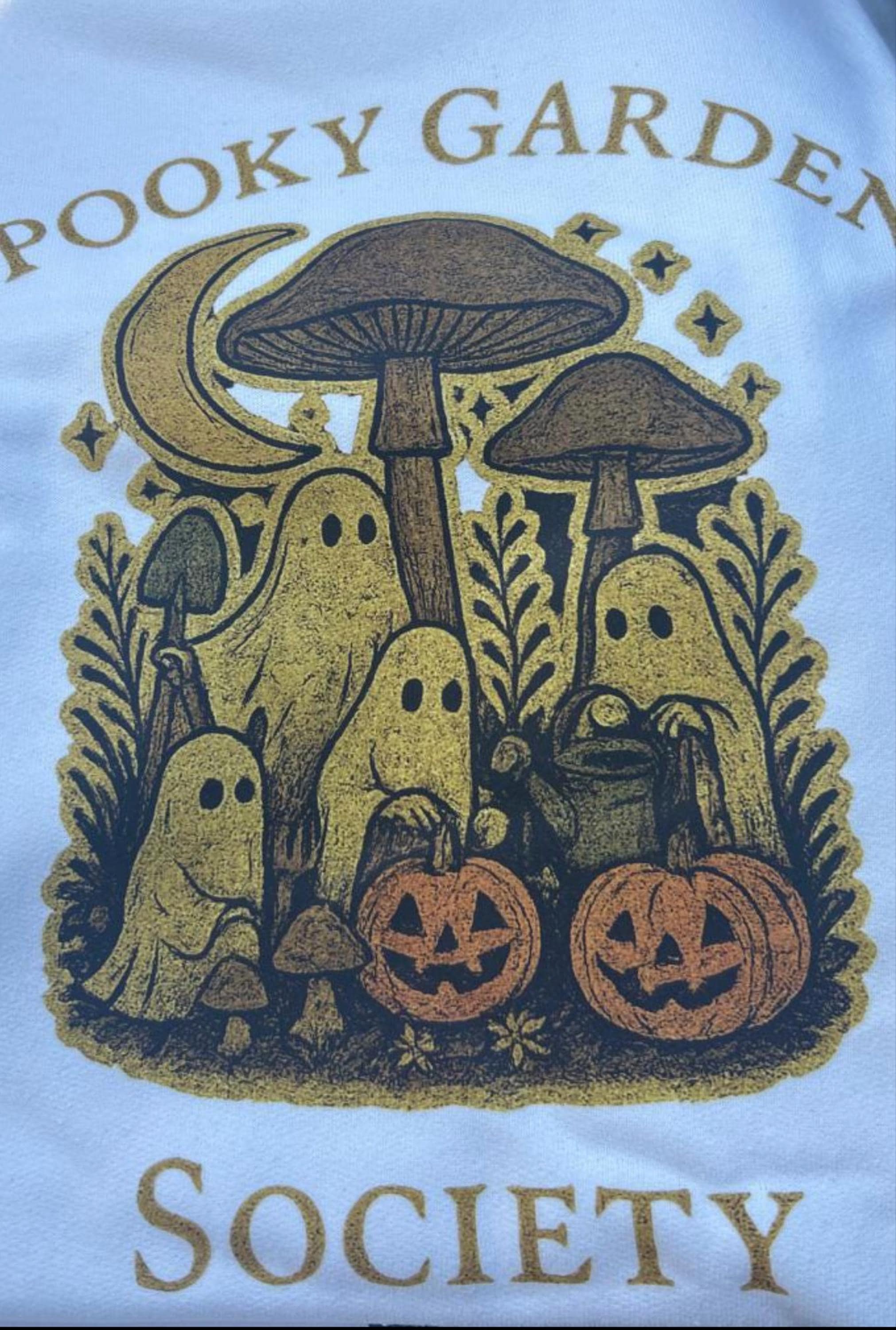 Join the Spooky Garden Society — where ghostly gardeners harvest magic by moonlight and pumpkins bloom in the crisp autumn air. This vintage-style Halloween shirt is perfect for lovers of mushrooms, witchy forests, and cozy fall vibes. Designed in a cottagecore folk art style, it features friendly ghosts, jack-o'-lanterns, and oversized mushrooms under a crescent moon — creating the ultimate soft gothic, pumpkin-patch aesthetic.